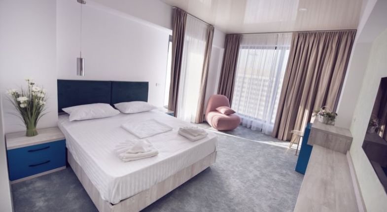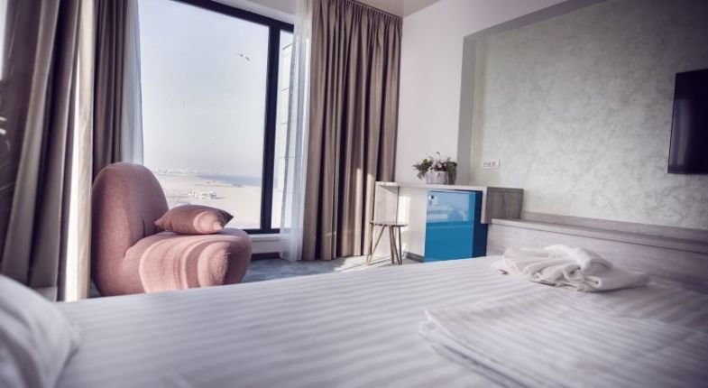 Toate camerele dispun de aer condiLLionat, papuci, halat de baie, uscator de par, baie cu dus, minibar, TV, wi fi, usctor de pr, balcon/teras, seif, telefon, birou.
