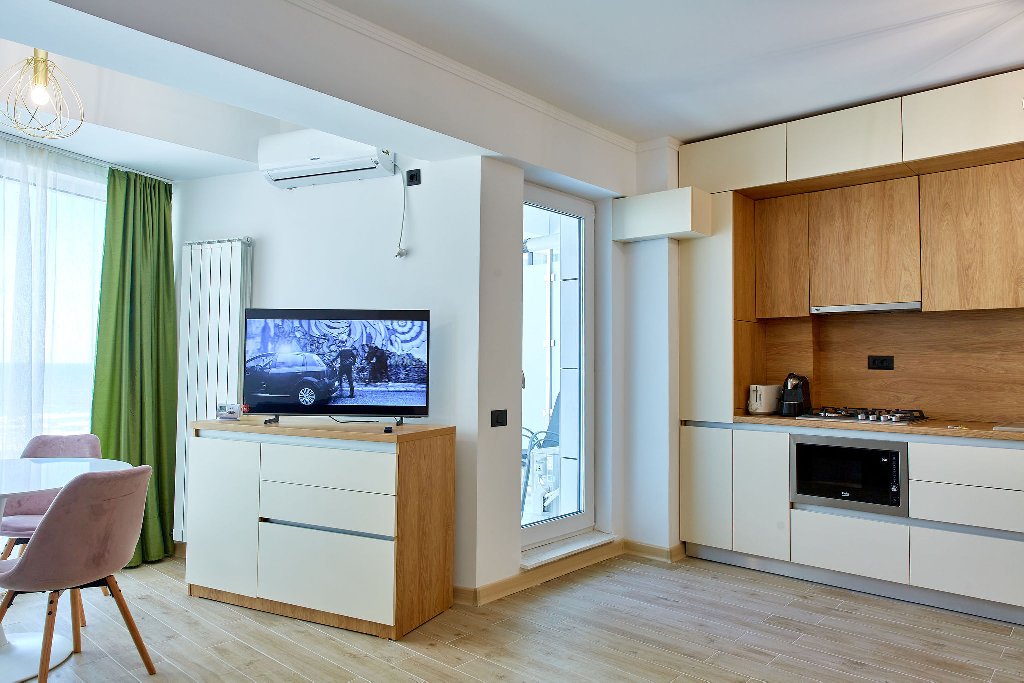 Va punem la dispozitie o garsoniera moderna, este amplasat intr-o zona ideala in Mamaia Nord, locul unde poti gasii cele mai bune nisipuri din Constanta, o gama extinsa de restaurante , magazine alimentare si mai ales Promenada recent renovata.