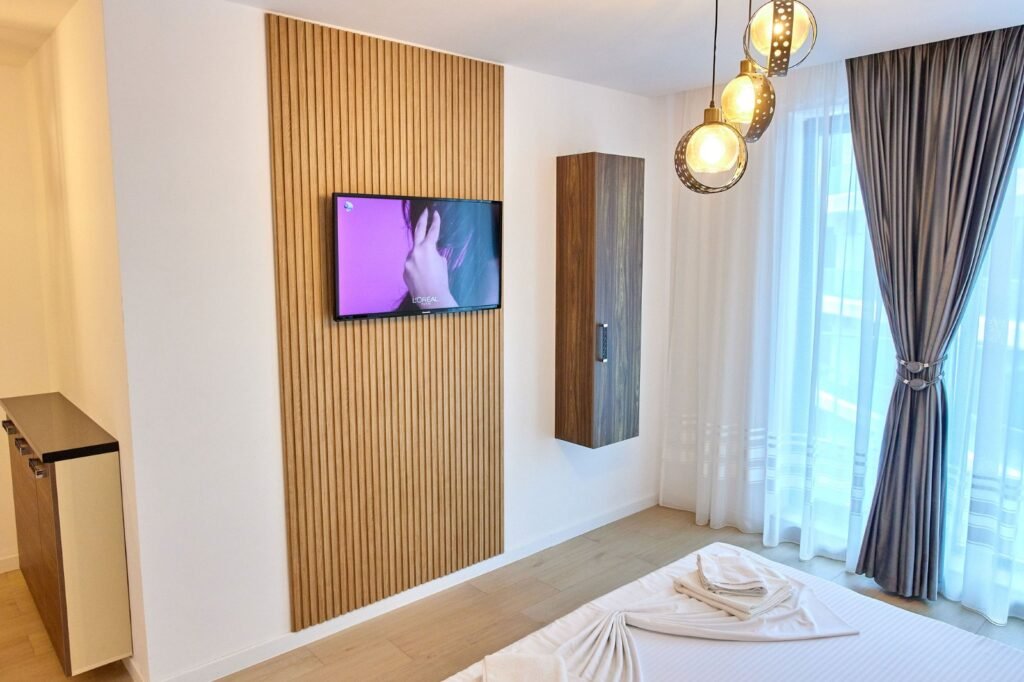 Apartament Beautiful Almar este compus din living open space cu canapea extensibila si bucatarie (dotata cu plita electrica moderna , cuptor , frigider, cuptor cu microunde si vesela.) dormitor matrimonial cu fotoliu extensibil separat cu usa, baie cu dus walk-in, balcon cu vedere la lac. Apartamentul dispune de wi fi, aer conditionat in living si tv in ambele camere. Adresa: Str Blv Mamaia, Nr 483.