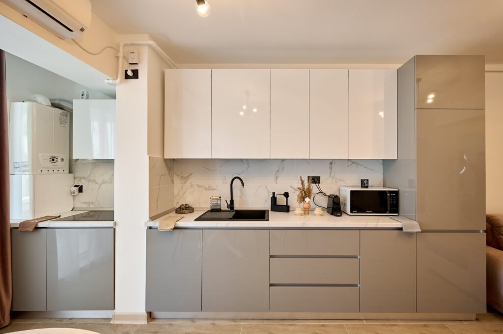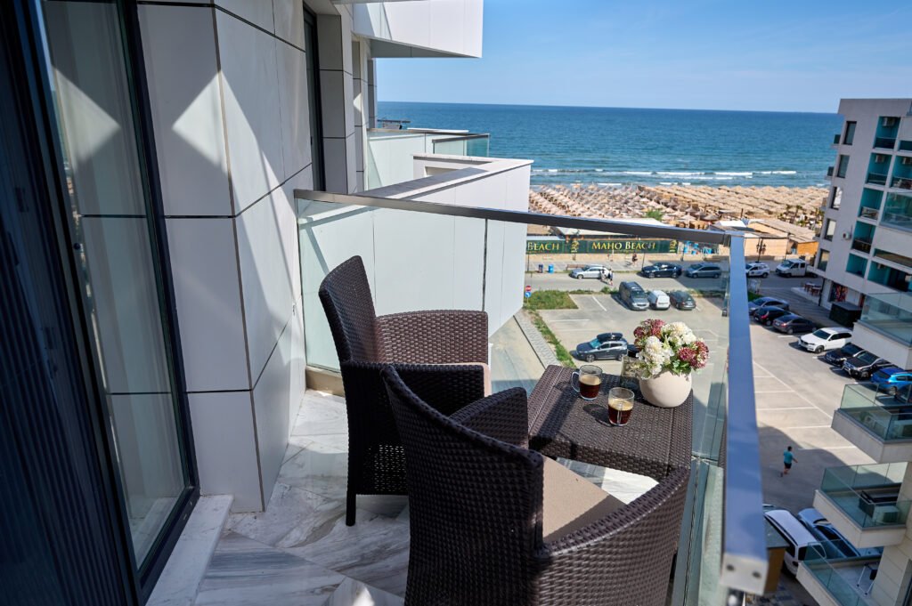 Apartamentul Cleo Infinity Alezzi cu o suprafata de 55 mp se compune din living cu canapea extensibila, bucatarie open space echipata cu plita, microunde, hota, aparat de cafea, frigider, dormitor cu pat matrimonial, wi fi, centrala proprie, aer conditionat in living si tv in ambele camere, baie cu dus walk in si masina de spalat si balcon. Adresa: strada Promenada nr. 85 bis, et. 5, complex Infinity Alezzi.