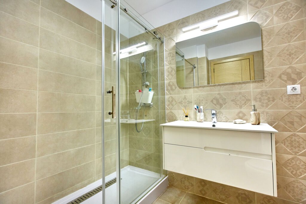 Apartamentul Mavi Onix se compune din living cu canapea extensibila si cu bucatarie open space (dotata cu plita, cuptor, frigider, microunde, prajitor, hota, vesela, aparat de cafea), dormitor cu pat matrimonial, separat cu usa, baie cu dus walk- in si masina de spalat rufe, tv este disponibil in ambele camere, aer conditionat, internet, si centrala propie. Adresa: Strada D25, nr 5, bloc B4, etaj 2.
