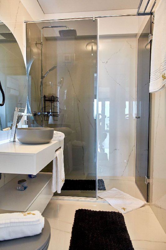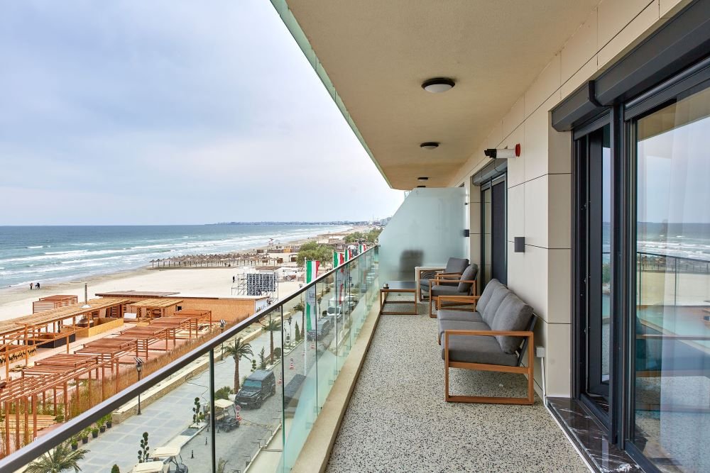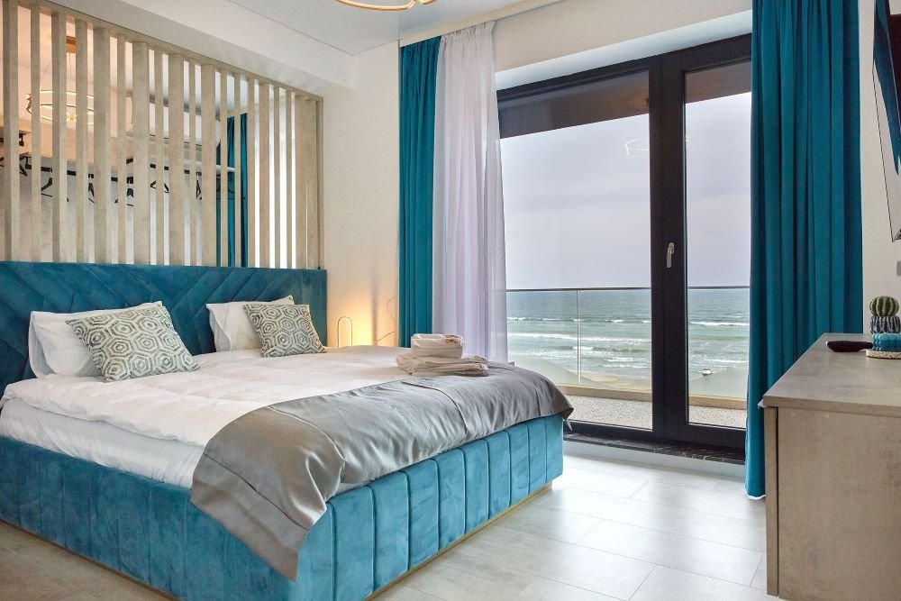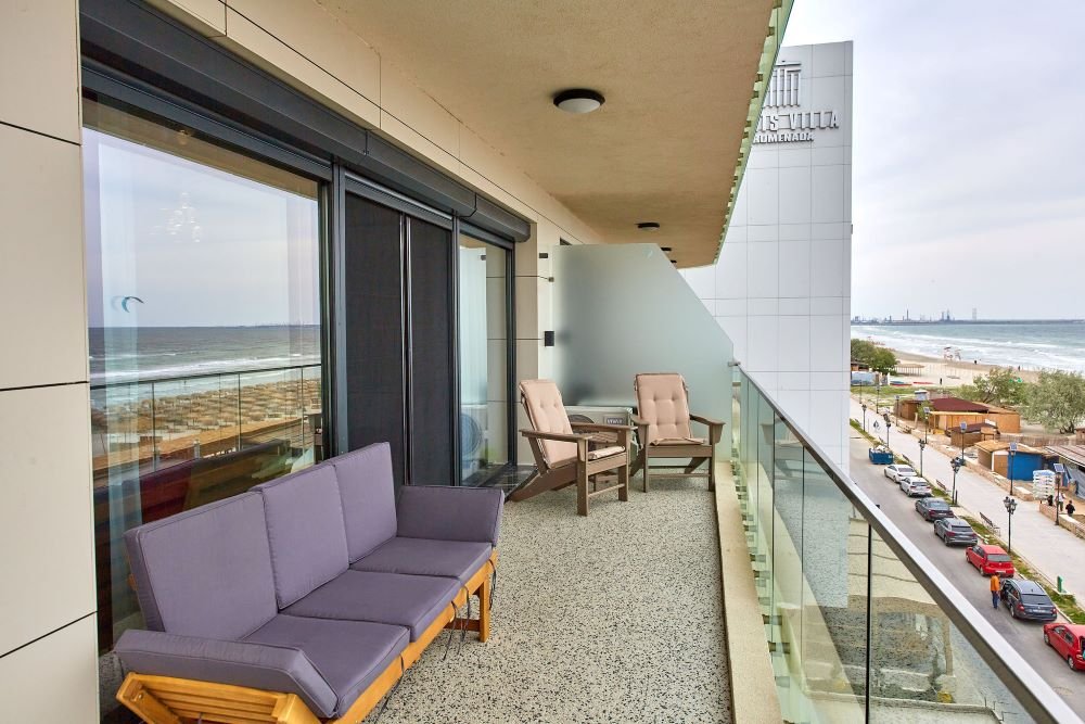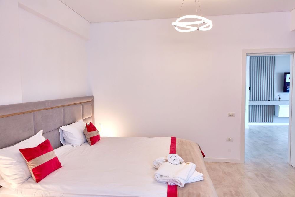 RA Luxury Suite Stefan Resort are doua dormitoare cu pat matrimonial, tv, sifonier, living open space cu canapea extensibila si vedere directa catre mare, bucataria dotata cu o plita moderna, aragaz, frigider incorporat si vesela, baia dotata cu cabina de dus, balconul dotat cu mobilier.