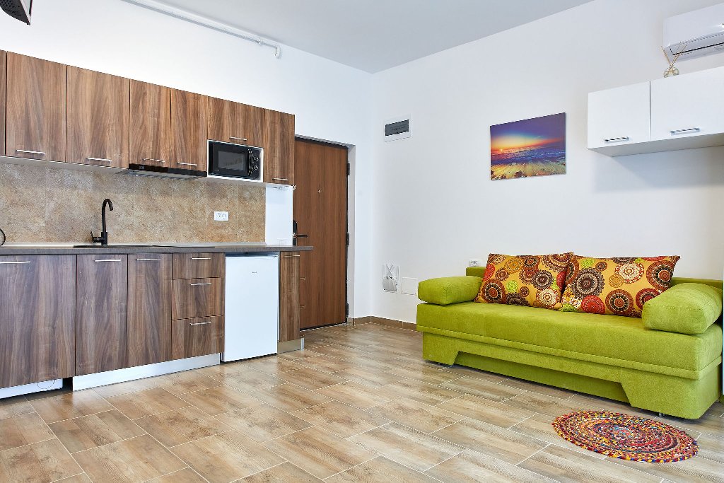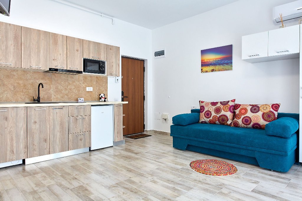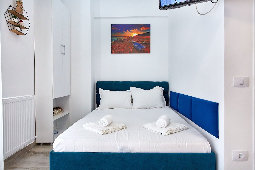 Camere: Apartamentele si studiourile sunt dotate cu pat matrimonial, canapea extensibila, 2 smart tv, internet wi-fi , aer conditionat, baie privata si bucatarie mobilata si utilata cu electrocasnice si electronice noi.