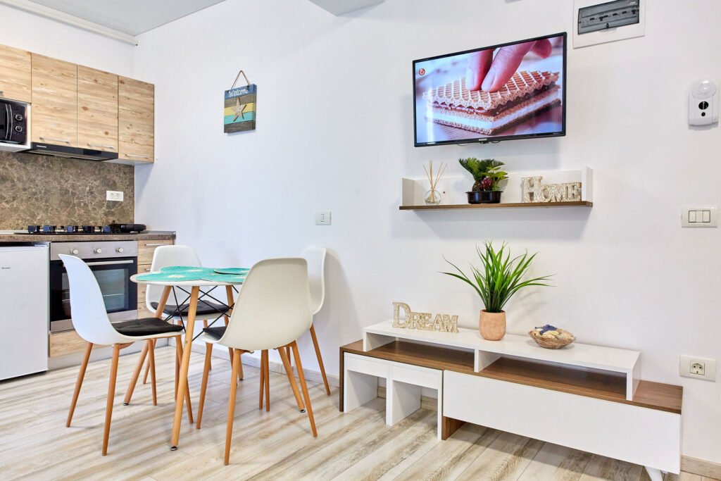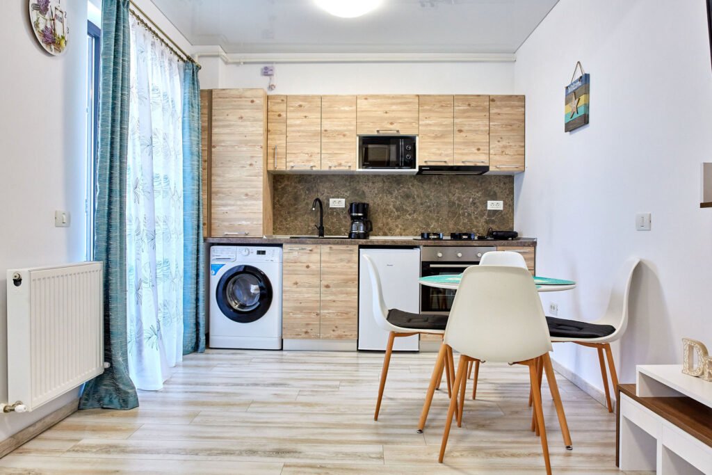 Studio 3 MNG cu o suprafata de 36 mp are in dotare un pat matrimonial si canapea extensibila, bucataria utilata complet(plita, cuptor cu microunde , aparat de cafea , frigider), baie dus walk-in, televizor, aer conditionat, balcon. Adresa: Prelungirea D19 , Bl C3, et. 3.