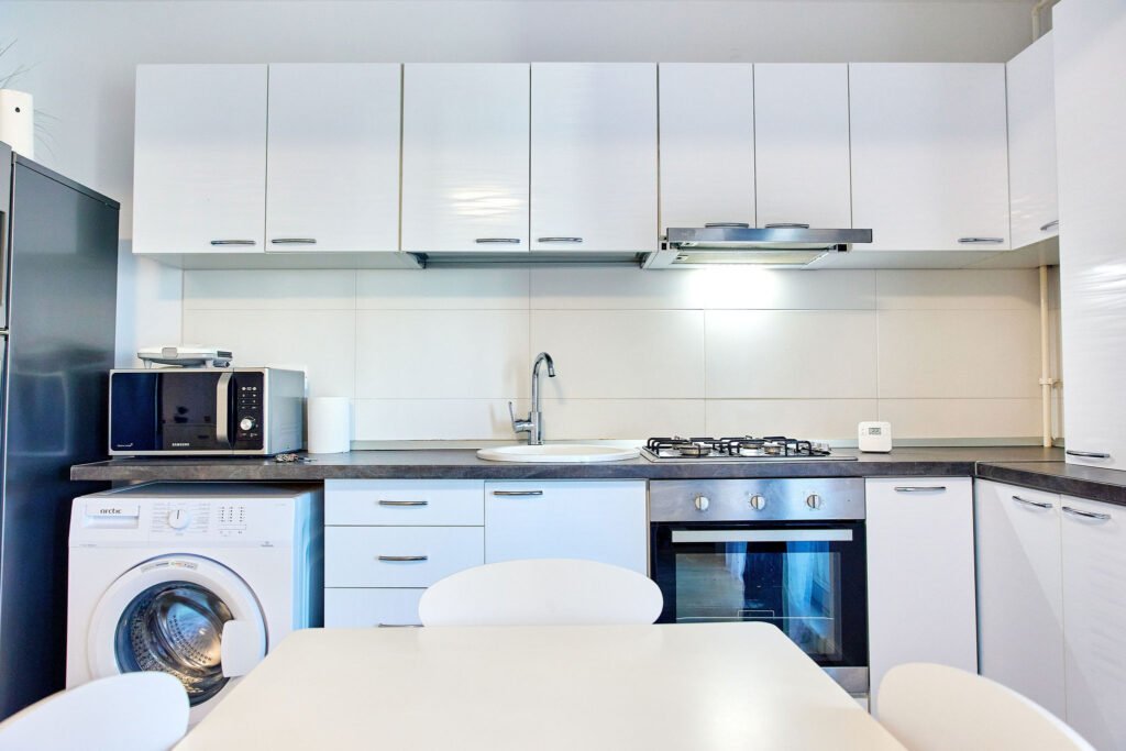 Apartamentul Laguna este compus din living open space cu canapea extensibila, dormitor cu pat matrimonial, bucatarie dotata cu aragaz modern, frigider, cuptor , cuptor cu microunde Ci maCin de splat, baie cu duC walk-in, tv, aer conditionat si balcon