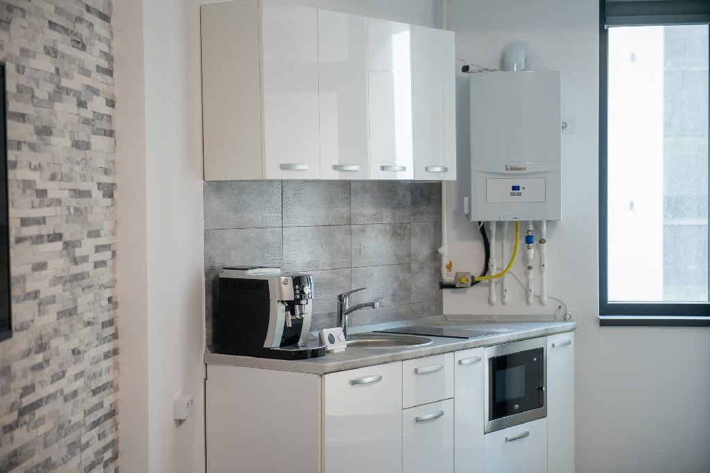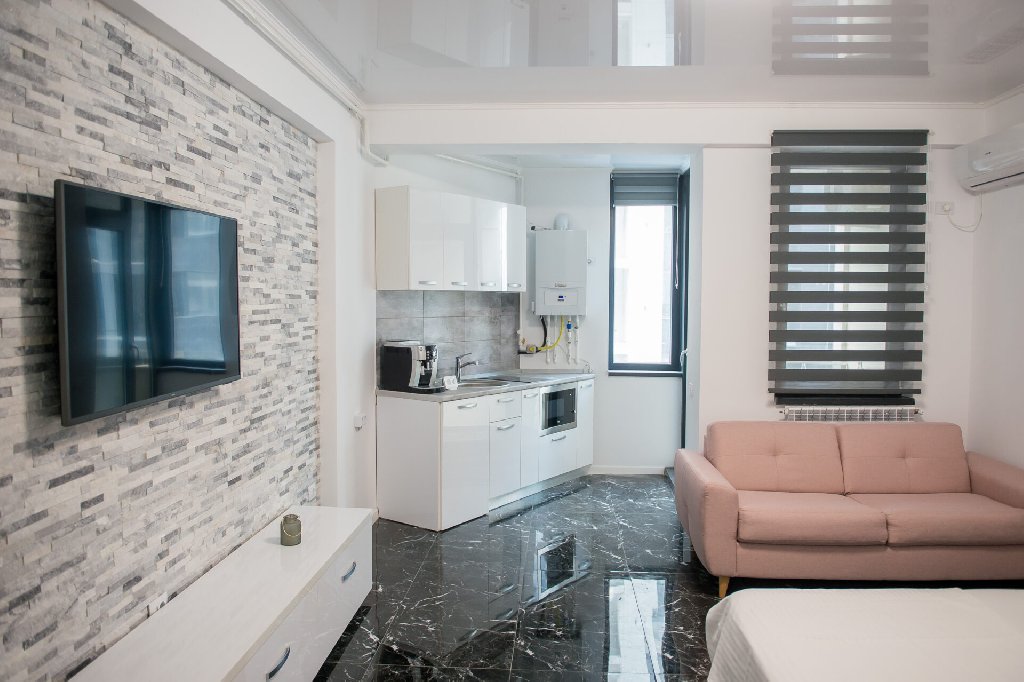 Studio-ul este complet mobilat si utilat modern, oferind un living cu pat matrimonial si o canapea extensibila. De asemenea, dispune de un dressing, aer conditionat si un smart TV pentru confortul dumneavoastra. In bucatarie veti gasi toate utilitatile necesare, cum ar fi plita, cuptor cu microunde si un expresor de cafea.