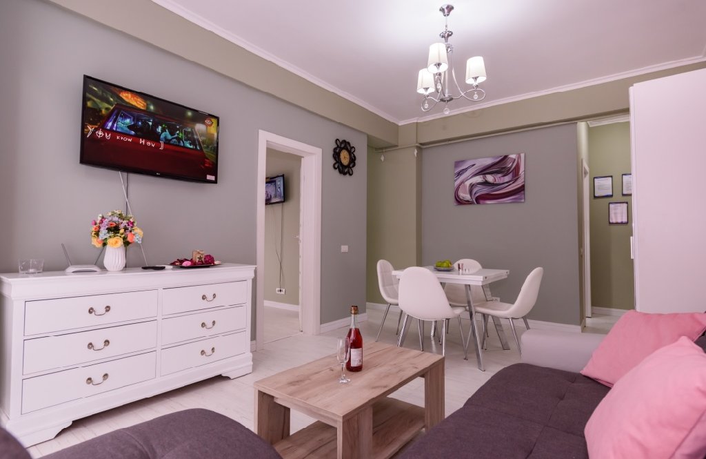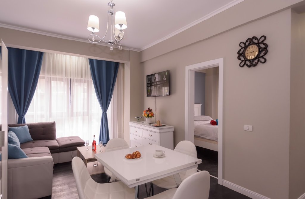 Toate apartamentele si garsoniera sunt dotate cu LCD tv-uri cu cablu, internet wireless, aer conditionat, bai moderne cu dus, uscator de par, fier si masa de calcat, uscator de rufe, pardoseala de parchet, plasa de tantari, masina de spalat rufe, produse de curatenie (burete de vase, detergent de vase, solutii de igienizare, mop, matura, galeata), bucatarii echipate (plita, hota, frigider, espressor, sandwich maker, prajitor de paine, fierbator).