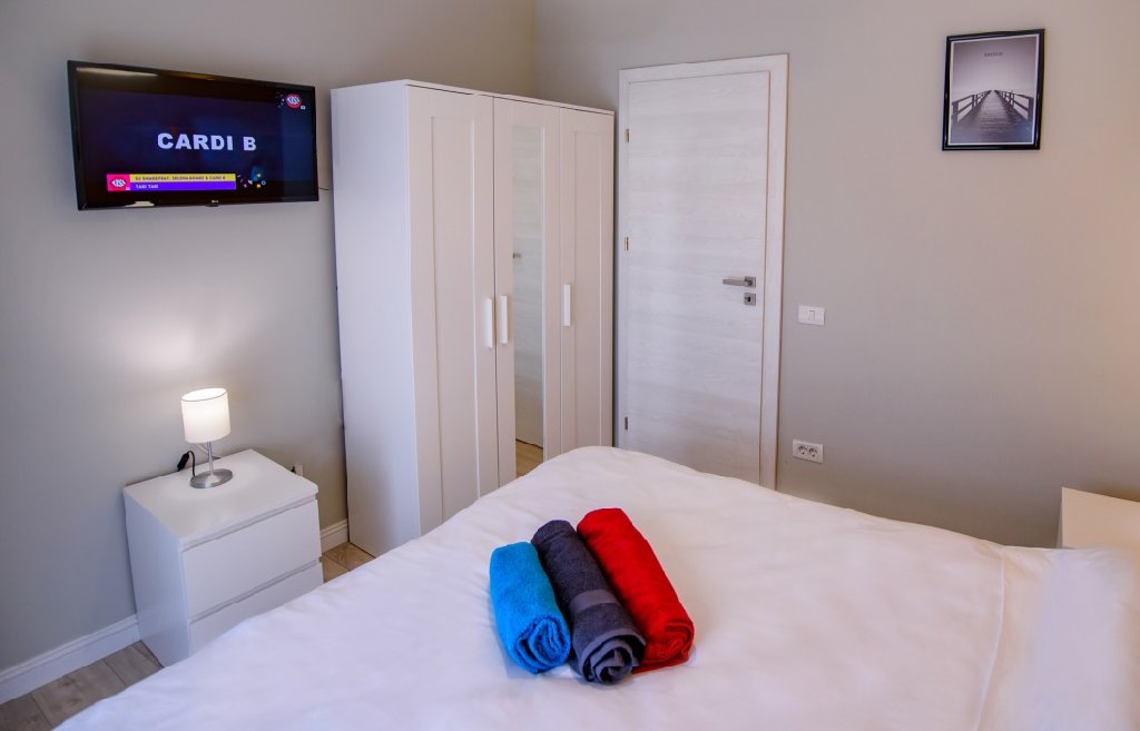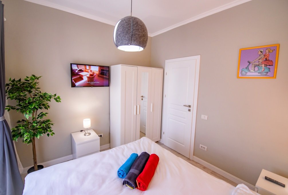 Apartamentele se predau cu curatenia facuta, 2 prosoape mari + 2 prosoape mici/pat . Se ofera o alta curatenie si schimb de lenjerii si prosoape pt sejururi mai mari de 7 zile.