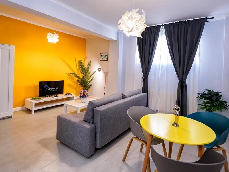 Aquarium Residence Economy 5 pune la dispozitie apartamente si un studio, decorate cu mult bun gust si echipate cu toate facilitatile pentru un sejur comfortabil si lipsit de griji. Spatiile de cazare sunt dotate cu LCD tv cu cablu, internet wireless, aer conditionat, bucatarii utilate si bai moderne cu dus. Cladirea este deservita de lift, iar oaspetii pot efectua singuri cazarea pe baza unui cod primit pe email.