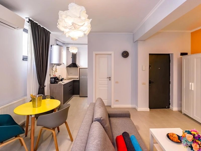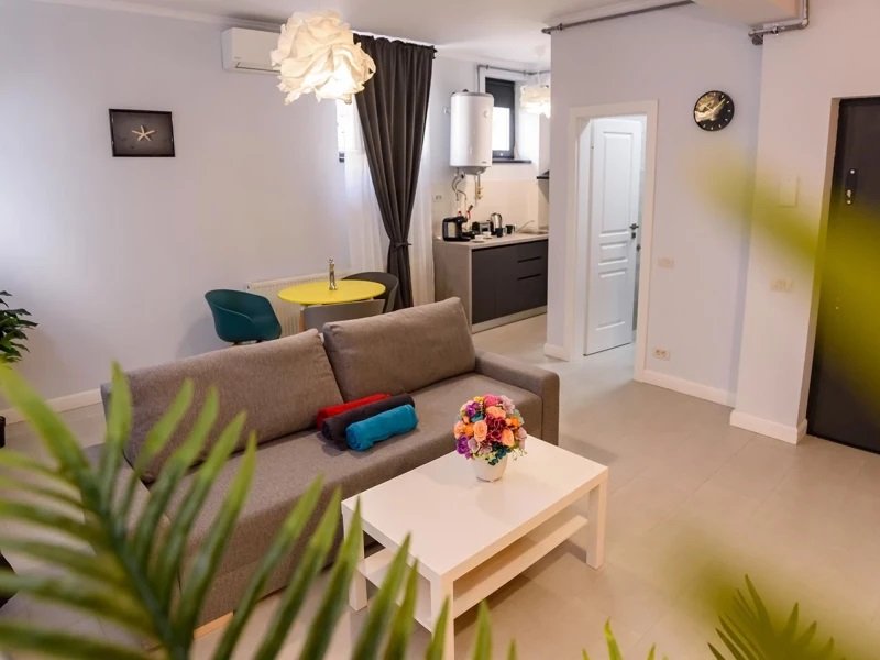 Garsoniera Economy D501 - este situata la demisol si nu dispune de terasa. Se compune din living cu canapea extensibila (160x200) si loc de servit masa, bucatarie si baie. Livingul dispune de Smart tv de 108 cm diagonala. Suprafata 30 mp.