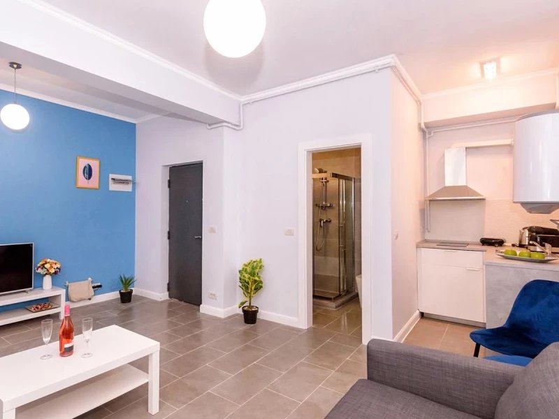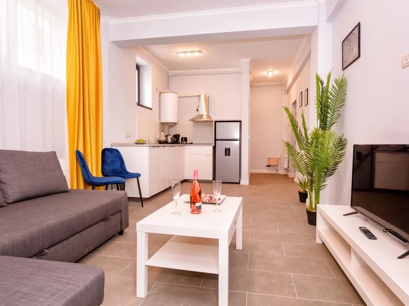 Garsoniera Economy D701 - este situata la demisol si nu dispune de terasa. Se compune din living cu canapea extensibila (160x200) si loc de servit masa, bucatarie si baie. Livingul dispune de Smart tv de 108 cm diagonala. Suprafata 30 mp.