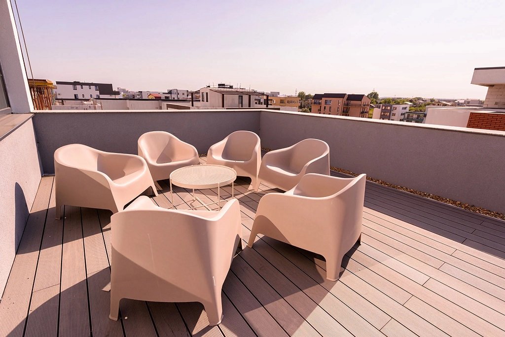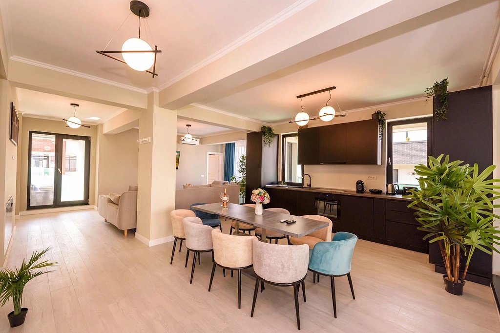 Penthouse-ul este dotat cu LCD tv-uri cu cablu, internet wireless, aer conditionat, bai moderne cu dus, fier si masa de calcat, uscator de rufe, uscator de par, pardoseala de parchet, plasa de tantari, masina de spalat rufe, produse de curatenie (burete de vase, detergent de vase, solutii de igienizare, mop, matura, galeata), bucatarii echipate (plita, hota, cuptor, frigider, espressor, sandwich maker, prajitor de paine, fierbator).