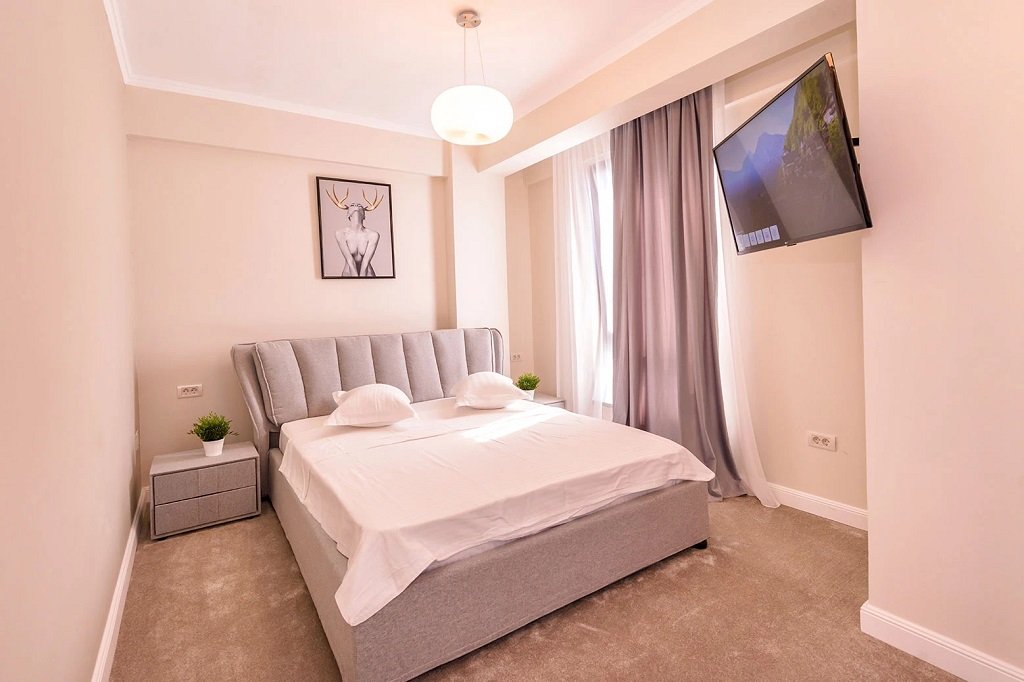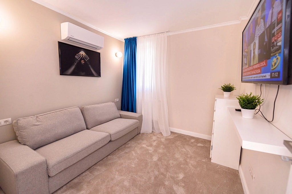 Apartamentul se predau cu curatenia facuta, 2 prosoape mari + 2 prosoape mici/pat . Se ofera o alta curatenie si schimb de lenjerii si prosoape pt sejururi mai mari de 7 zile.