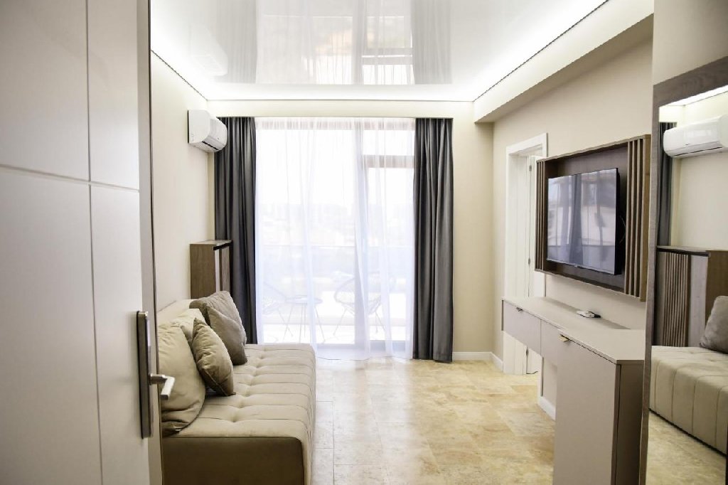 Studio Premium, cu o suprafata de 16 mp, detine un pat matrimonial dublu, baie cu dus, uscator de par, balcon, AC, TV, internet, cana fierbator. Poate acomoda 2 adulti sau 2 adulti + 1 copil de 0 - 4.99 ani.