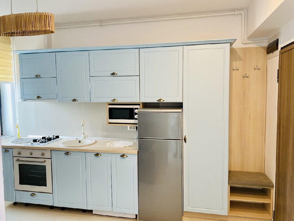 Studioul este format dintr-un dormitor plus 1 living cu canapea extensibila cu bucatarie complet mobilata si utilata, baie dotata cu cada. Studioul poate acomoda pana la 4 persoane. Suprafata studio 35 MP.