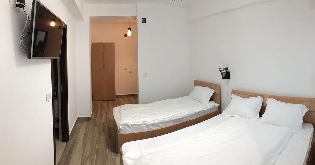 Descriere: Hotel Blue Sky se remarca prin raportul excelent calitate / pret, confort , stil si eleganta. Toate camerele sunt utilate si dotate modern, pentru a satisface cele mai pretentioase gusturi. Unitatea dispune de 25 camere duble si 12 camere triple avand urmatoarele dotari: aer conditionat, tv lcd, baie cu cabina de dus, minibar/frigider, internet wireless. Parcarea este disponibila in limita locurilor disponibile.