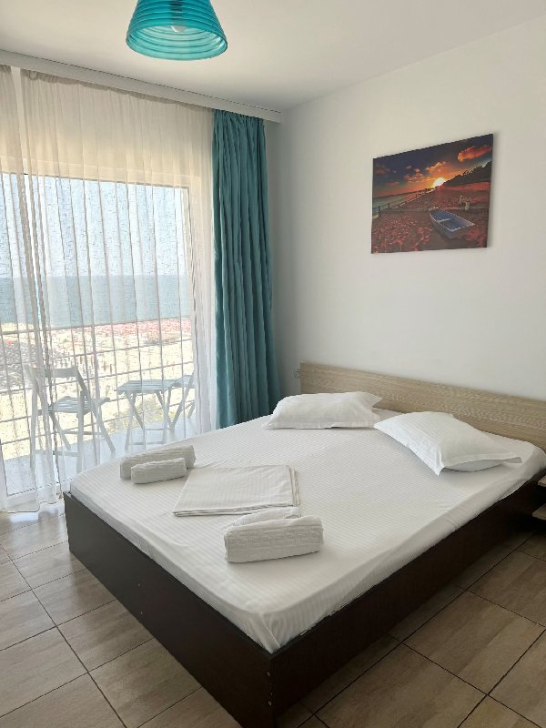 Camerele duble au o suprafata de aproximativ 16 mp, sunt dotate cu pat matrimonial, TV, frigider, aer conditionat, baie proprie cu cabina de dus, internet si dispun de balcon. Pot avea vedere la mare sau vedere la statiune.