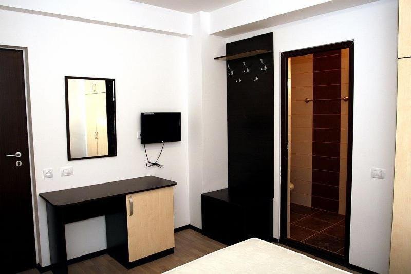 Camere: Fiecare camera de care dispune hotelul este dotata cu :frigider / minibar, telefon, Tv cu cablu, internet wireless, uscator de par, aer conditionat si baie proprie.
