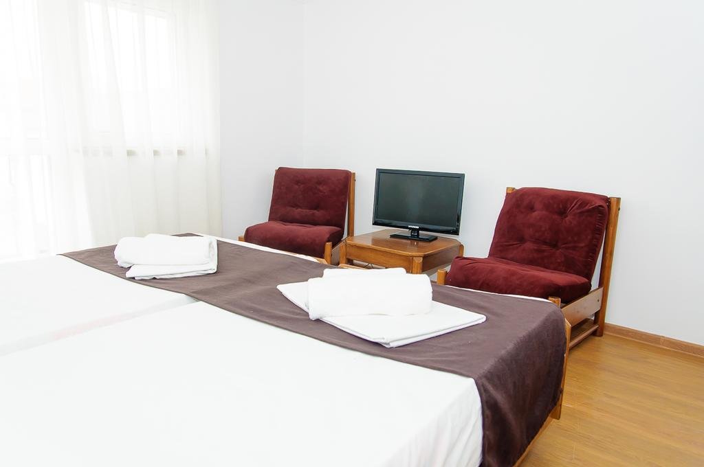 Camerele sunt dotate cu TV, racitor, aer conditionat, internet, uscator par, telefon, terasa de vara, bar-de-zi, gelaterie, cofetarie.