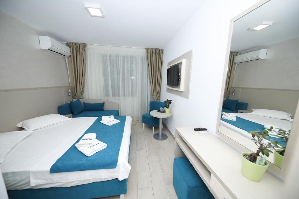 Camerele sunt complet renovate cu mobilier nou, dotate cu baie proprie cu dus, TV si minibar, aer conditionat, geam termopan.
