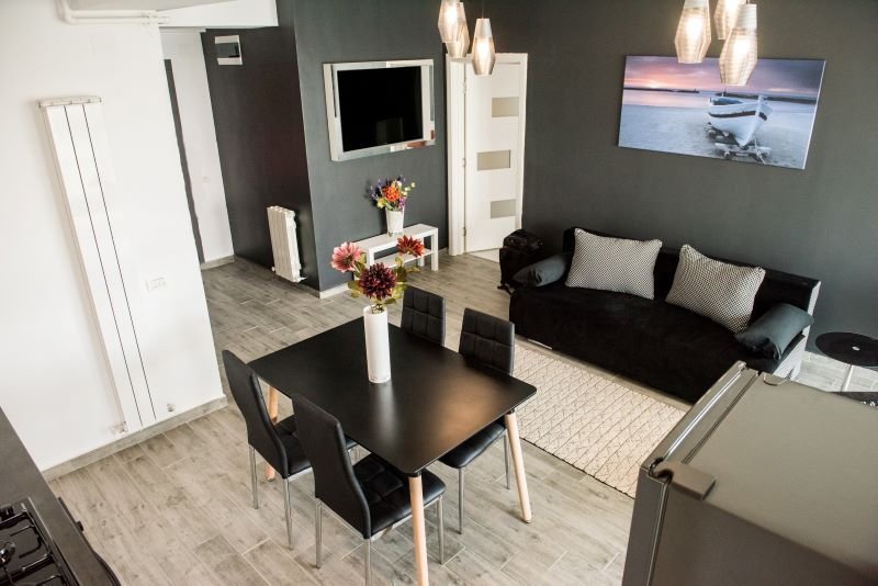 Facilitati copii in camera cu 2 adulti:Toate apartamentele au capacitatea maxima 4 persoane. Eventual, exista si varianta in care se pot caza si 4 adulti cu 2 copii mici (cu varsta de maxim 5 ani), caz in care copiii pot dormi in pat/canapea cu parintii. Mentionam ca nu se ofera paturi suplimentare sau patuturi-tarc turistilor.