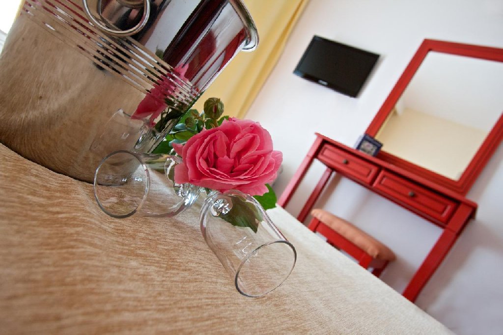 Camerele sunt dotate cu mobilier nou, aer conditionat, TV, minibar, telefon cu acces, baie cu dus, geam termopan. Toate camerele au balcon.