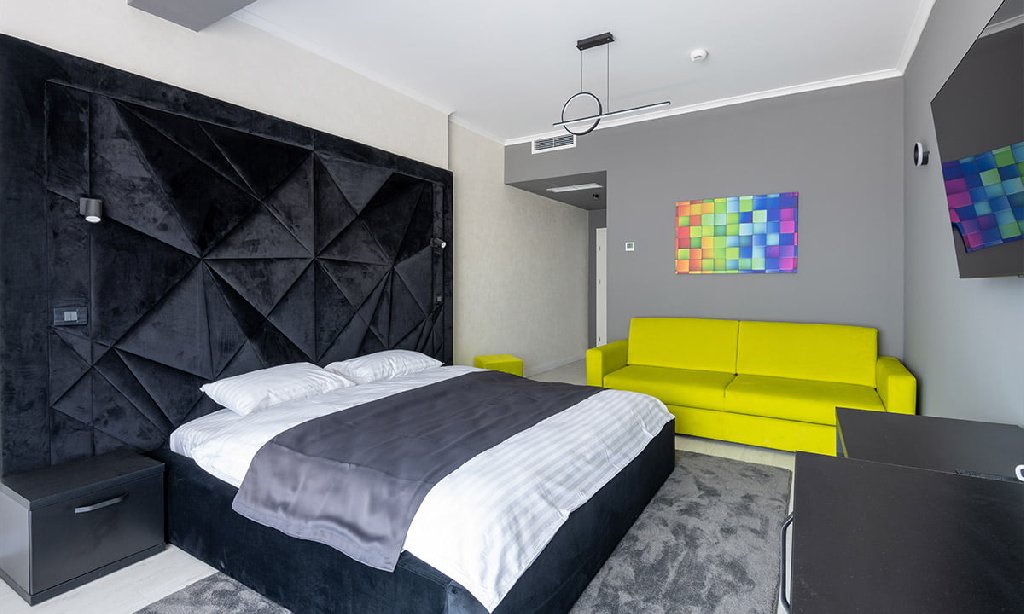Dubla deluxe with bathtub - are in dotare 1 pat king size, canapea extensibila, fotoliu, masuta de cafea, baie proprie cu cada, balcon si au suprafata de 30mp. Capacitate maxima: 2 adulti+1 copil sau 3 adulti