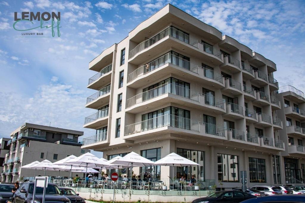 Descriere: Lemon Cliff Luxury ofera cazare in 56 de camere duble si 17 apartamente, amenajate modern si dotate ce Smart Tv, wi fi, aer conditionat, seif, baie proprie si acces pe baza de card magnetic.