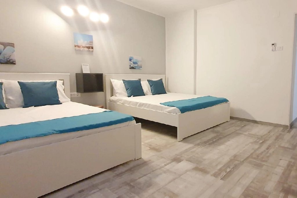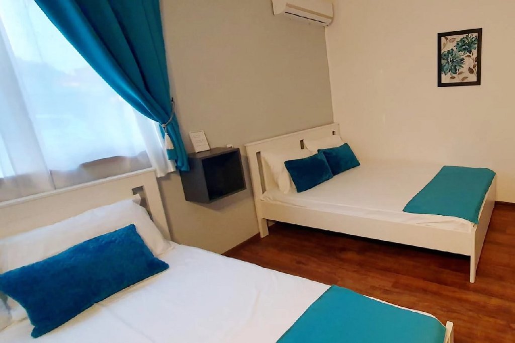 Camerele triple dispun de pat matrimonial si un pat single, LCD tv, internet wireless, aer conditionat, racitor, fierbator, baie cu cabina de dus si uscator de par. Suprafata 23 mp.
