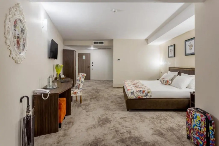 Prestige Boutique Hotel Craiova is located in Craiova. This boutique hotel is located in walking distance from the city center.Prestige Boutique Hotel Craiova is located in Craiova. This boutique hotel is located in walking distance from the city center.You can stop by the bar. Taste the local cuisine and have a rest in the restaurant. Free Wi-Fi on the territory will help you to stay on-line. If you travel by car, you can park in a parking zone for free.Also, the following services are available for guests at the boutique hotel: a massage room and a doctor. For participants of business meetings, there is a conference hall. The tour assistance desk of the boutique hotel will help you book an excursion. If you want to make your journey even more comfortable, you can order a transfer.Accessible for guests with disabilities: the elevator helps them to go to the highest floors. There are other services available for the guests of the boutique hotel. For example, a laundry, dry cleaning, ironing, car rental and a safe-deposit box. The staff of the boutique hotel will be happy to talk to you in English.You can stop by the bar. Taste the local cuisine and have a rest in the restaurant. Free Wi-Fi on the territory will help you to stay on-line. If you travel by car, you can park in a parking zone for free.Also, the following services are available for guests at the boutique hotel: a massage room and a doctor. For participants of business meetings, there is a conference hall. The tour assistance desk of the boutique hotel will help you book an excursion. If you want to make your journey even more comfortable, you can order a transfer.Accessible for guests with disabilities: the elevator helps them to go to the highest floors. There are other services available for the guests of the boutique hotel. For example, a laundry, dry cleaning, ironing, car rental and a safe-deposit box. The staff of the boutique hotel will be happy to talk to you in English.The room is warmly decorated and has everything you need to have a rest after a long eventful day. There is an alarm clock, a TV, a mini-bar, a bathrobe and slippers. Please note that the listed services may not be available in all the rooms.The room is warmly decorated and has everything you need to have a rest after a long eventful day. There is an alarm clock, a TV, a mini-bar, a bathrobe and slippers. Please note that the listed services may not be available in all the rooms..1 EUR not included 15 per guest per night