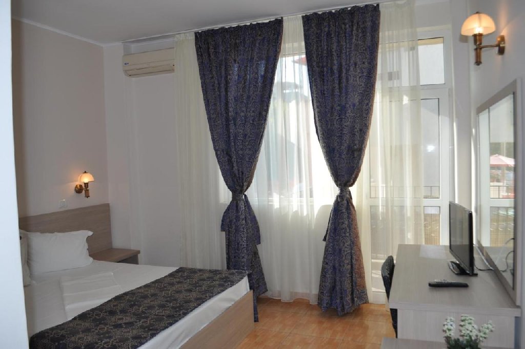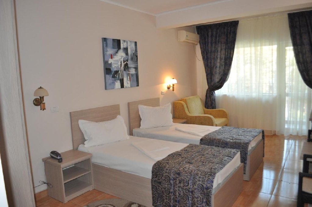 Camerele duble fara balcon sunt dotate cu pat matrimonial 160/200, aer conditionat, baia cu cabina de dus si cosmetice hoteliere, minibar, wi-fi, TV, plasa de tantari si se afla la parter.