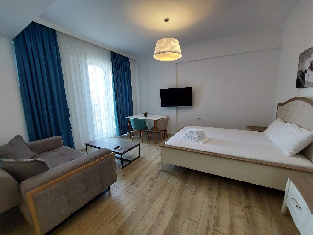 Hotelul se afla pe malul Lacul Siutghiol vis-a-vis de Parcul de distractii Aqua Magic. Dispune de 50 de apartamente, complet echipate si utilate, inclusiv cu masina de spalat.