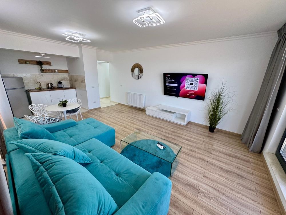 Apartamentele cu un dormitor se compun din living cu canapea extensibila, dormitor cu pat matrimonial (160x200), bucatarie echipata, baie cu cada sau cabina de dus si balcon mobilat (masa si scaune). Camerele sunt separate cu usa, iar aer conditionat exista doar in living, dar TV este in ambele incaperi. Are suprafata de 50 mp si vedere mare.