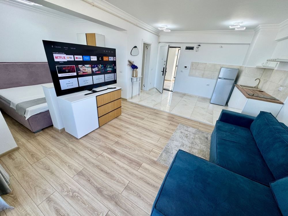 Studiourile se compun dintr-un open space cu un pat matrimonial (160x200) si o canapea extensibila (120x190), bucatarie echipata, baie cu cabina de dus. Are suprafata de 45 mp si vedere mare.