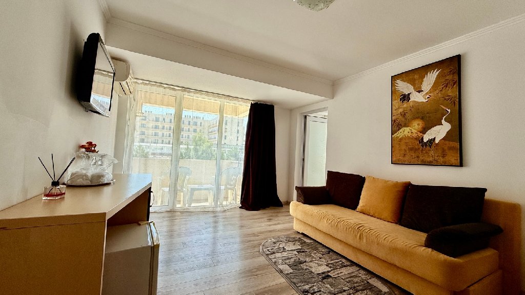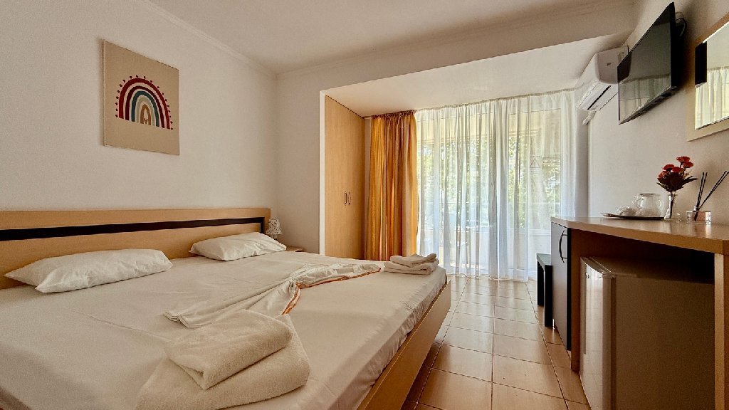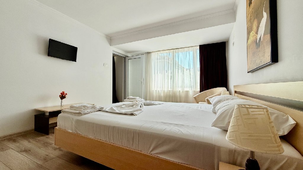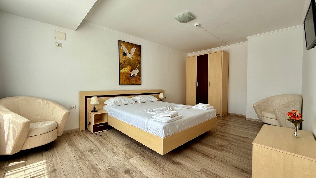 Descriere: Amplasarea acestui hotel, chiar in centrul statiunii, in apropierea plajei, va poate oferi chiar de la prima vedere tot ceea ce ati astepta de la o vacanta pe litoral. Aici puteti sa va bucurati de confort si relaxare la malul marii , indiferent daca sunteti alaturi de familie, prieteni sau singuri.