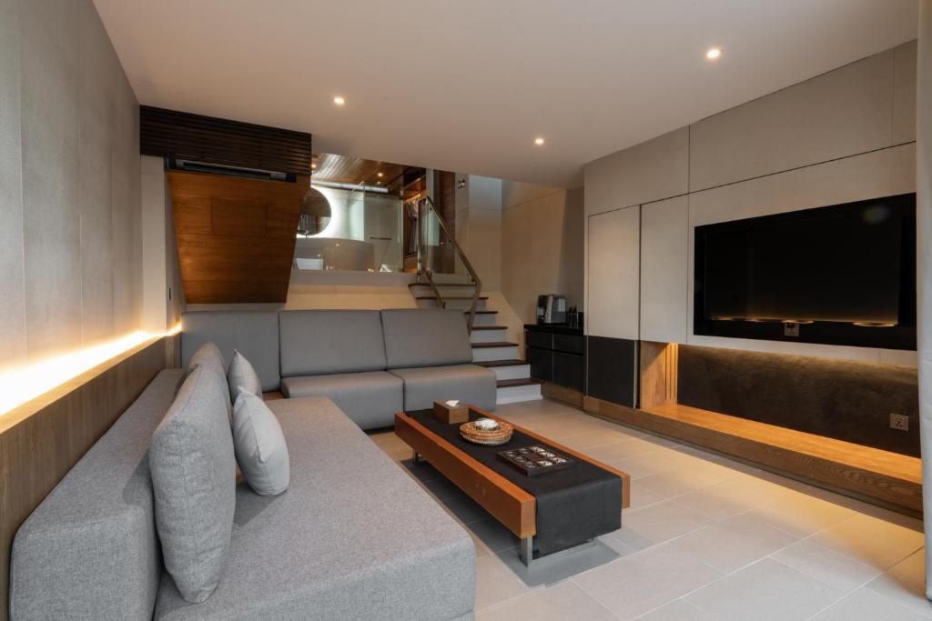 Veți putea admira vederea frumoasă la mare de la ferestrele de sticlă transparentă și de pe terasa la soare privată. Fiecare cameră este dotată cu un minibar gratuit, cu bere rece și gustări. De asemenea, există un TV cu ecran plat și o stație de andocare pentru iPod.